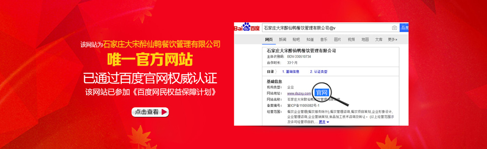 Copyright © 石家莊大宋醉仙鴨餐飲管理有限公司 All Rights Reserved.  技術支持:河北供求網(wǎng) 河北名企網(wǎng)榮譽企業(yè)-河北企業(yè)名錄已收錄